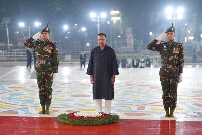 অমর একুশে ফেব্রুয়ারি ও আন্তর্জাতিক মাতৃভাষা দিবসের প্রথম প্রহরে শুক্রবার দিবাগত রাত ১২টা ১ মিনিটে প্রথমে রাষ্ট্রপতি মো. সাহাবুদ্দিন শহীদ মিনারে পুষ্পস্তবক অর্পণ করেন। এরপরই পুষ্পস্তবক অর্পণ করেন প্রধানমন্ত্রী তারেক রহমান।